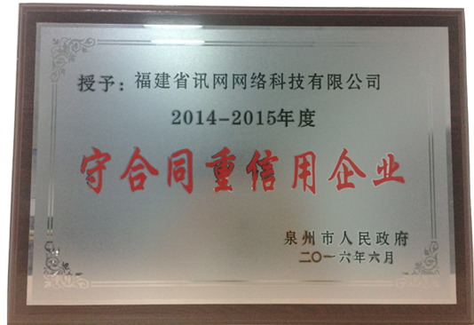 近日,泉州市人民政府公布2014-2015年度 “守合同重信用企業”(以下簡稱“守重企業”)名單,福建訊網網絡科技股份有限公司位列其中,這是對訊網網絡誠信經營行為的肯定。