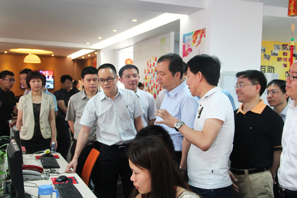 5月28日上午,泉州市市長鄭新聰、泉州市經貿委主任黃國富等一行領導蒞臨福建省訊網網絡科技有限公司進行實地參觀考察,并就電子商務如何助力傳統鞋服產業發展提出指導意見。