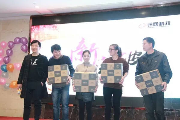 王董攜訊網(wǎng)全體股東上臺向全體員工敬酒。