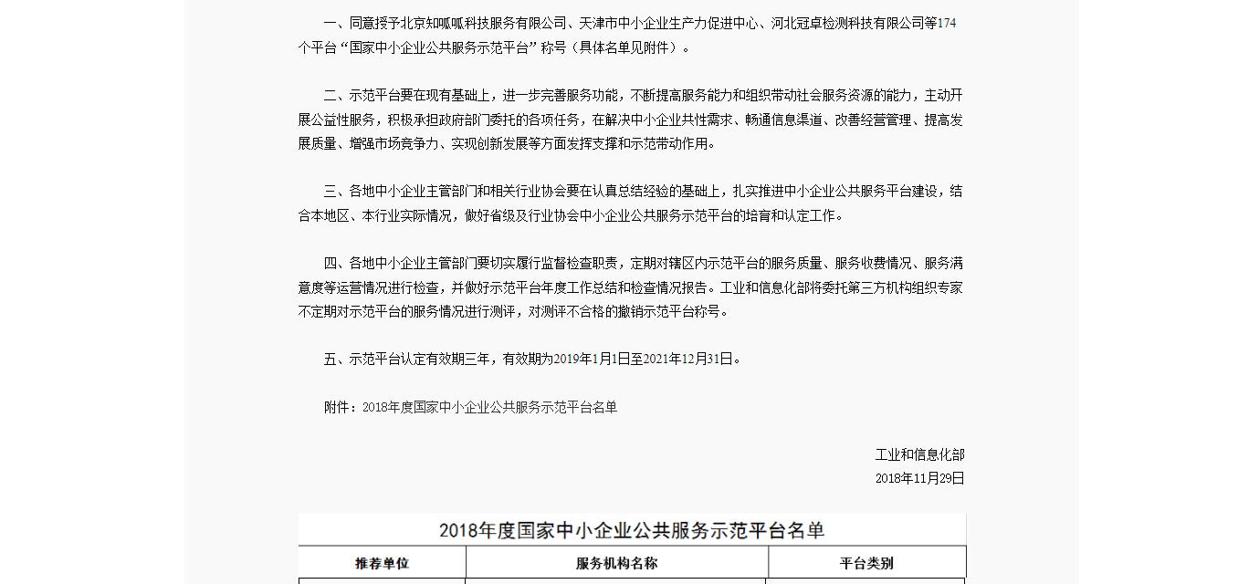 據了解,為推動中小企業公共服務平臺建設,支持小型微型企業健康發展,工信部印發了《國家中小企業公共服務示范平臺認定管理辦法》,每年開展一次示范平臺的評審工作,今年是第六批,全國范圍內共有174家企業/單位通過了審核,有效期3年。