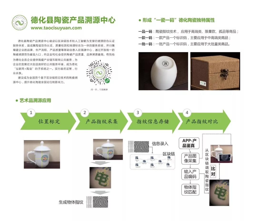 訊網(wǎng)網(wǎng)絡(luò)旗下平臺“愛陶瓷”,通過引進(jìn)電子商務(wù)交易技術(shù)國家工程實(shí)驗(yàn)室,全面打造陶瓷產(chǎn)業(yè)生態(tài)2.0;在商業(yè)模式上實(shí)施全息化、社交化理論,初步實(shí)現(xiàn)全息化商品/原材料、全息化企業(yè)、全息化消費(fèi)者,實(shí)現(xiàn)了企業(yè)生產(chǎn)過程可視化,并以社交化為商業(yè)基礎(chǔ),打造線上、線下一體化的新零售模式;在區(qū)塊鏈的運(yùn)用上,已經(jīng)與德化縣市場監(jiān)督管理局合作開發(fā)了基于區(qū)塊鏈技術(shù)的可視溯源系統(tǒng)及指紋防偽技術(shù)。
