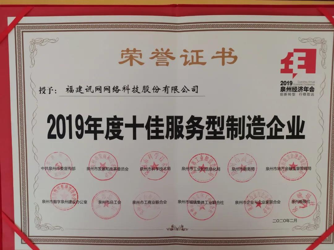 訊網網絡榮獲泉州市十大服務型制造企業(yè)